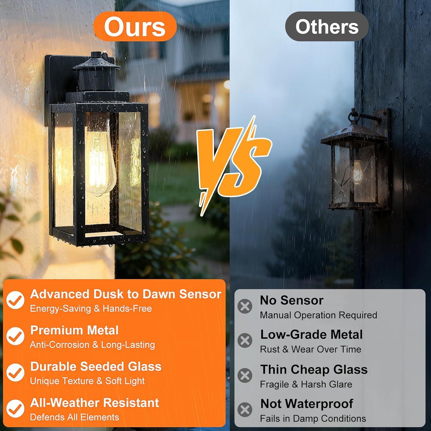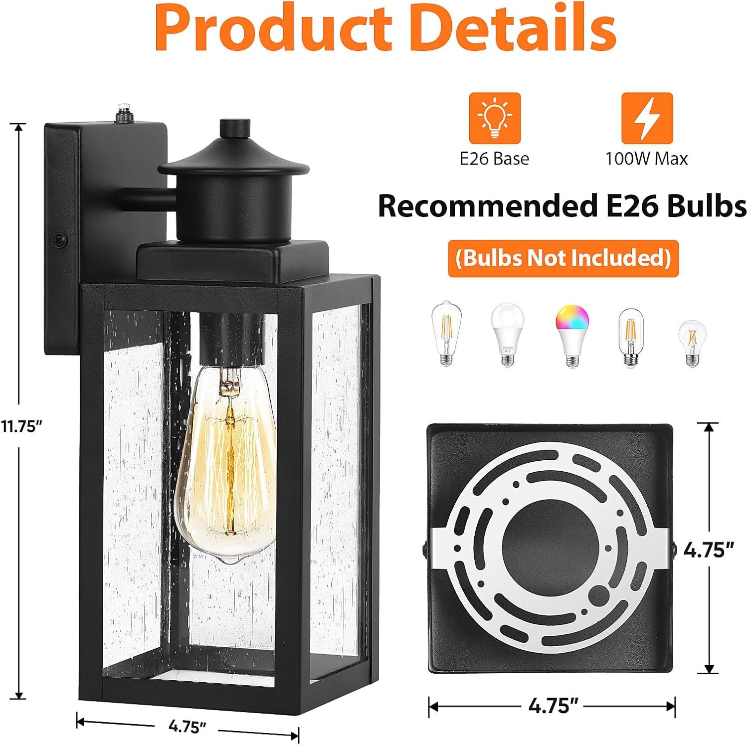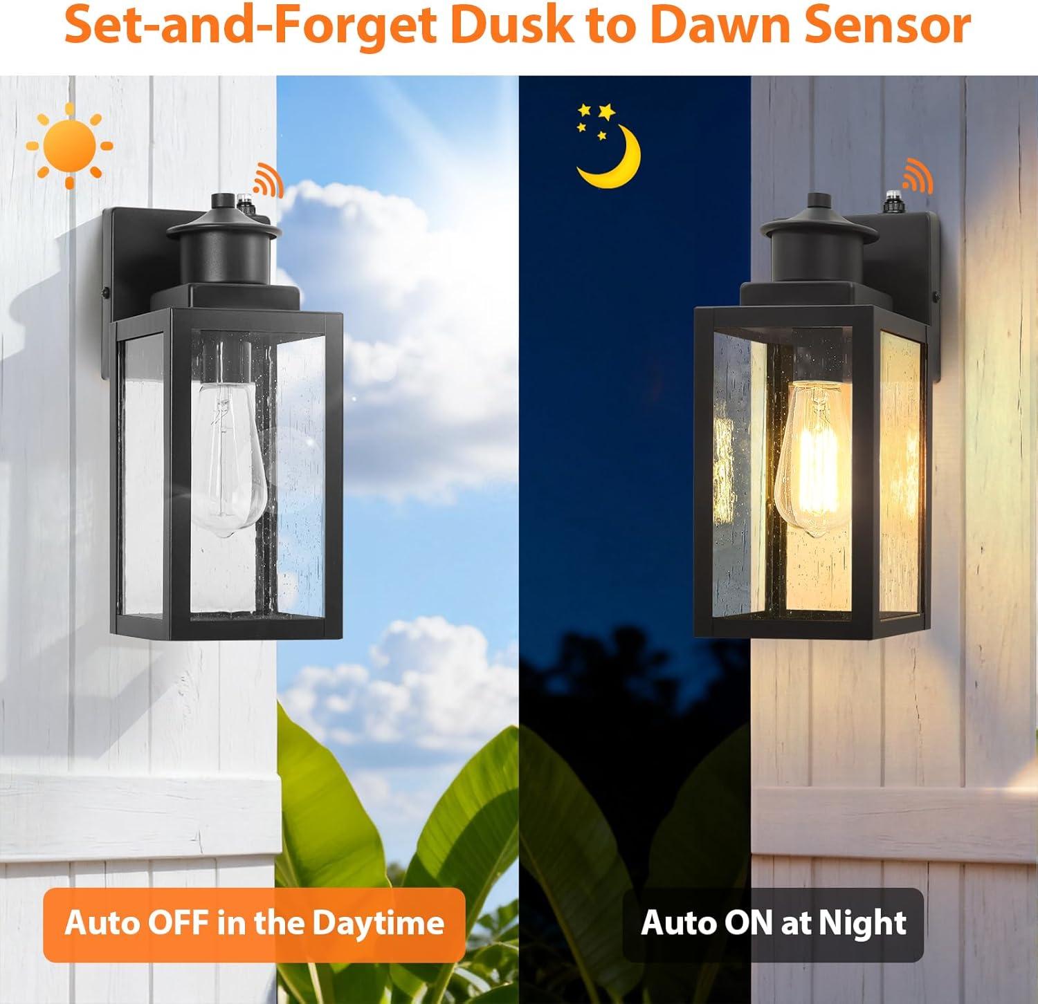Easy Installation & E26 Base Socket: This dusk to dawn light fixtures require two E26 base bulbs (100W max, not included) and supports most standard types, including LED, CFL, and halogen. For the ideal blend of aesthetics and efficiency, we recommend ST58 LED bulbs. Complete mounting hardware is included for a quick installation. The convenient open-bottom design ensures effortless bulb replacement and cleaning, helping your lights maintain their like-new appearance for years to come