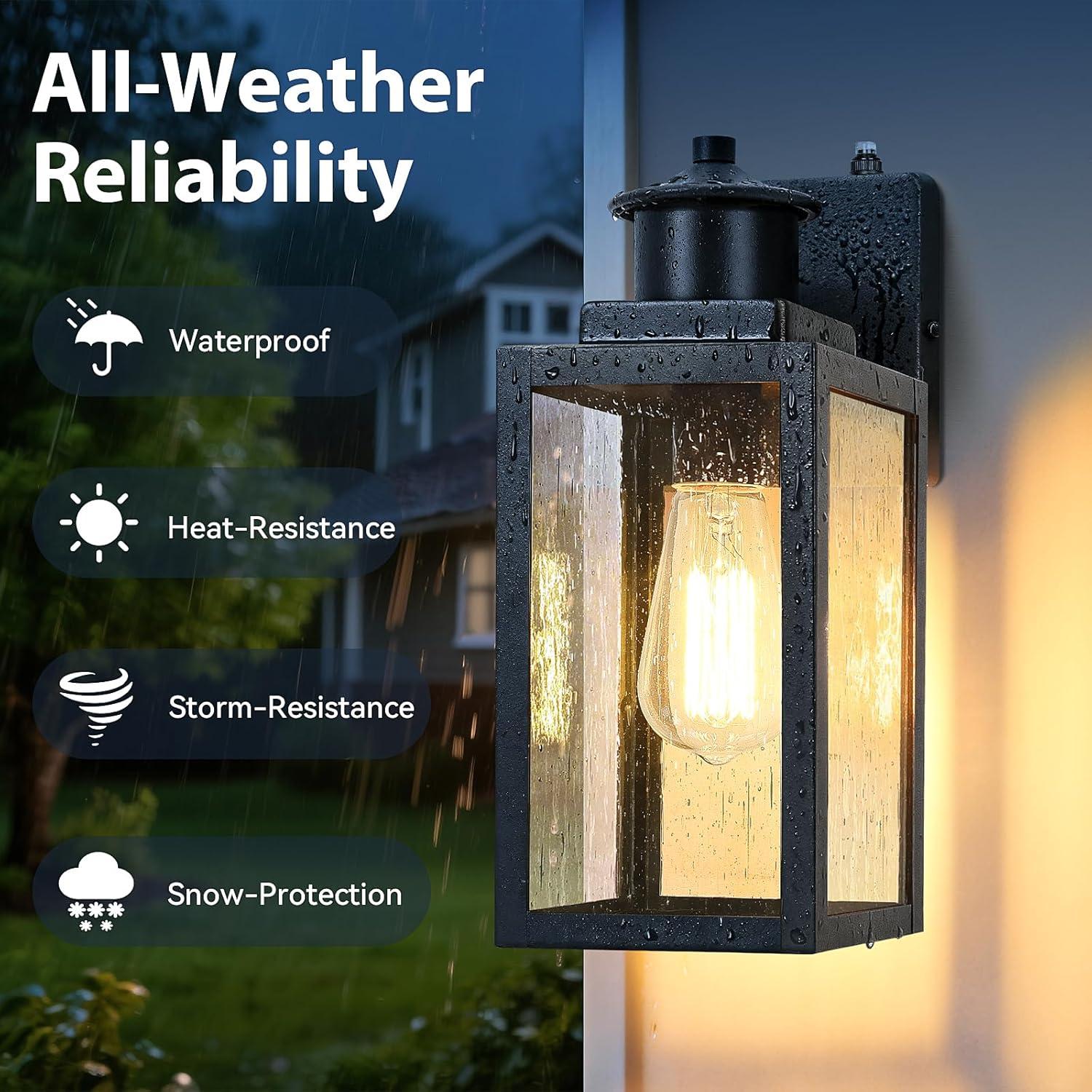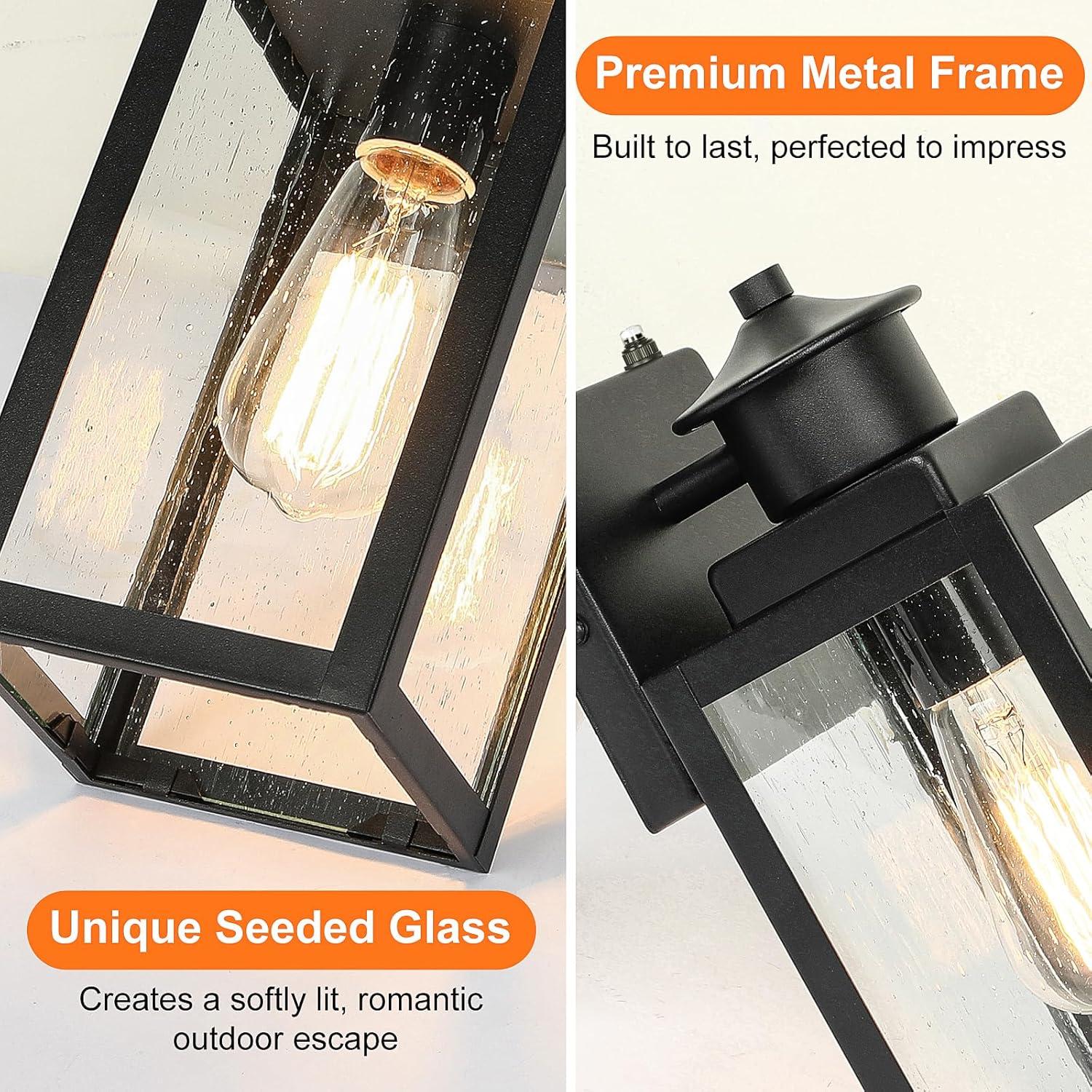 Sleek Design, Soft Glow: Imagine a light that does more than shine. Our porch lights pair a sleek matte black frame with a hand-blown seeded glass shade, ensuring every piece is unique. By day, they embody clean, modern style. By night, tiny bubbles within the glass cast a dappled, dancing pattern across your walls, turning a simple porch into a romantic outdoor escape and bathing it in a warmth that invites you to linger